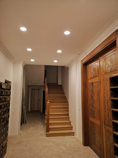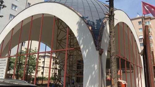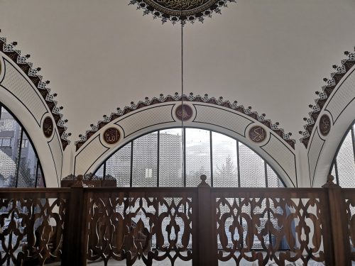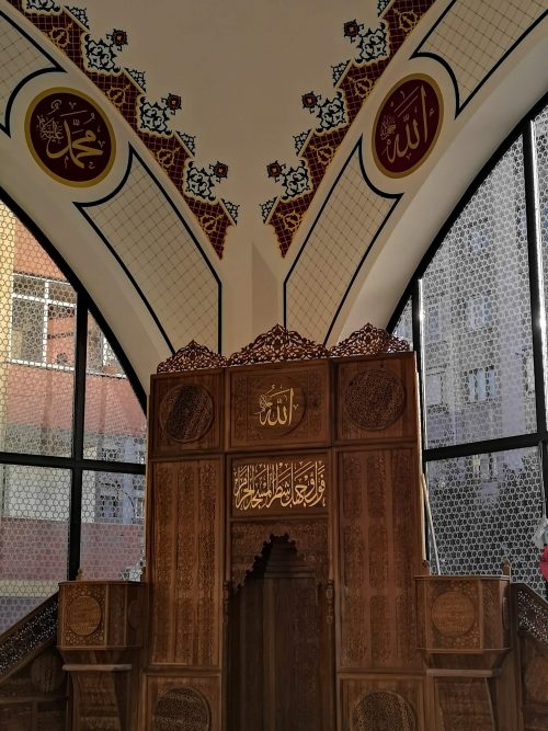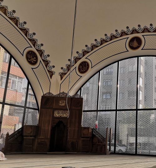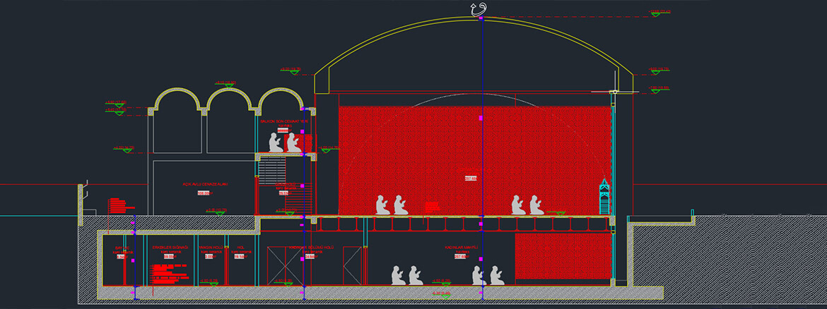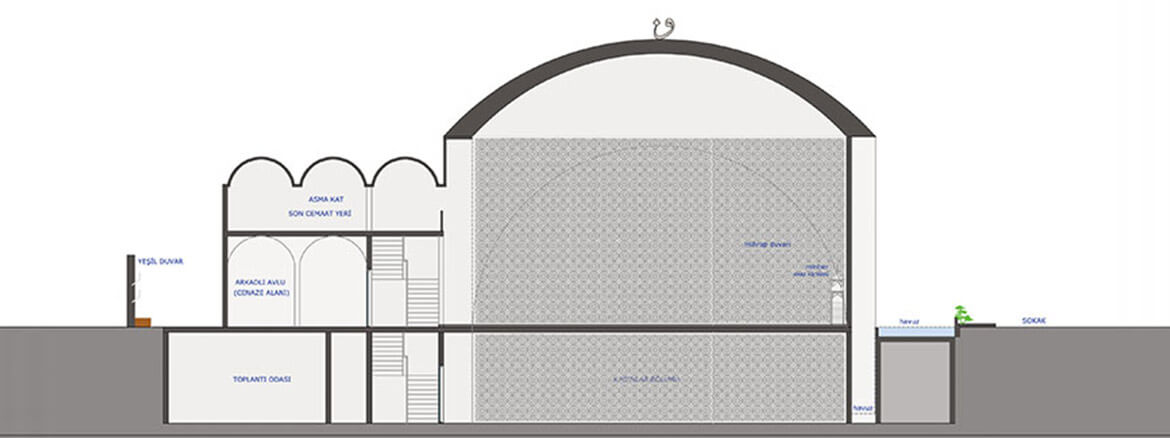Bugünün şartları ve mimarisine uygun yeniden projelendirilen camimiz kadınlar mahfili ile birlikte, yaklaşık 600 kişi kapasiteli olup buna ek 100 kişi kapasiteli asma kata sahiptir. Ana giriş arkadlı arka avludan sağlanmakta; üstü tonoz örtülü avluda ‘kütüphane’ velçay evi’ek mahalleri bulunmaktadır. Projenin alt kotunda ise doğrudan ışık alacak şekilde yerleştirilen kız-erkek kur-an kursu sınıfları, imam ve müezzin odası ile gerektiğinde dernek toplantılarının da yapılabileceği bir toplantı mekanı; konferans salonu konumlanmaktadır. Alt kotta yeterli sayıda varolan abdesthaneye ek olarak aciliyet olması durumunda arka avludaki açık abdest mekanı da kullanılabilmektedir. Anlatımdaki farklı kotlara dağılan projenin genelinde yaşlı ve engelli ulaşımları da göz önünde bulundurulmuştur.