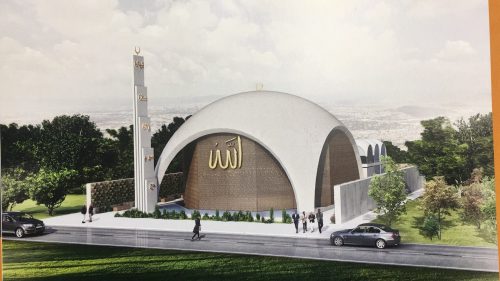 Projedeki minare yapısı klasikten uzak bir tasarımdır. Fakat asıl işlevi olan temsiliyet kavramını korumakla beraber bu temsiliyeti fiziksel olarak da manevi olarak da desteklemektedir. Islamın beş şartına ithafen beş parça halinde tasarlanan heykelimsi minare; üzerinde bu temsiliyetin fiziki hallerini barındırmaktadır. Karanlıkta göğe doğru aydınlanan yazılar, hem cami yapısının mevcudiyetinin algılanmasını hem de felsefesine uygun bir hissiyat duyumsaması sağlar. Minareyi sonlandıran hilal ise, gelenekselliğe öykünürken aynı zamanda paratoner görevini de üstlenmektedir.