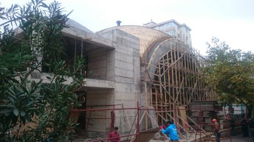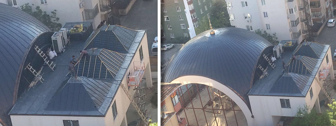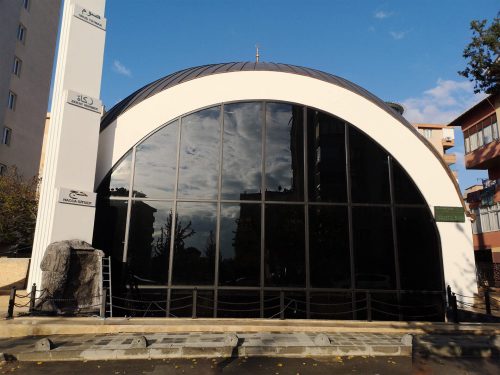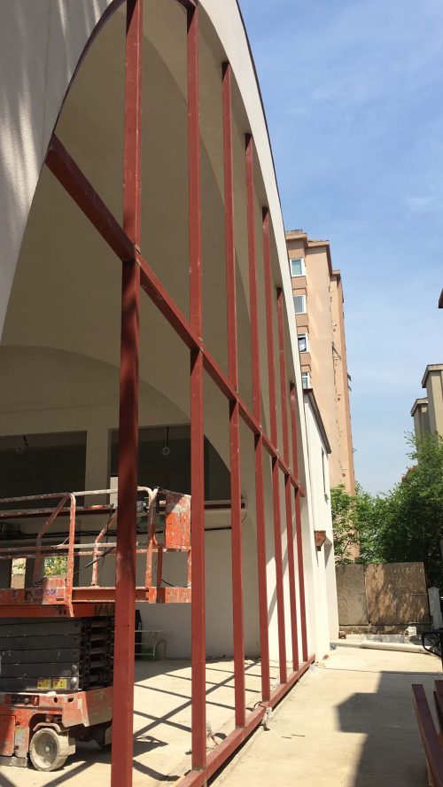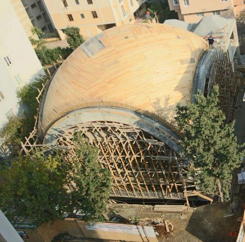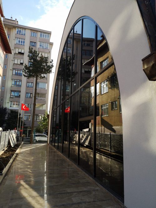Cephe tasarımında önerilen tül duvar dokusu iç mekanda, gün ışığının da etkisiyle cepheyi zeminle bütünlemekte, oluşan gölgelerle zengin bir iç hacim ve mekan olgusu yaratmaktadır. Cephedeki inceliğe karşılık brüt beton kubbenin tek parçada kendini var eden yapısallığı sadeliği korumakta ve aradaki uyumu sağlamaktadır.
